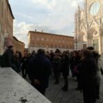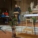 Da Piazza del Duomo, il gruppo si è poi spostato nella caratteristica cornice del chiostro della Chiesa di San Cristoforo, per un attività che ha fatto da conclusione ad una serie di incontri che la Pastorale Giovanile ha realizzato per i giovani durante il periodo quaresimale, in preparazione della Pasqua.