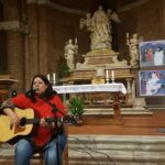 E dopo la cena, tutti al concerto di Debora Vezzani, dentro la chiesa di San Cristoforo. Lei e suo marito hanno offerto una preziosa testimonianza sull’amore cristiano, su cosa significa essere famiglia e sul discernimento. Attraverso le sue canzoni, Debora ha raccontato quella che per lei è stata esistenza travagliata, che ha trovato poi un suo scopo grazie alla fede e al suo talento riposto nella mani di Dio. In una chiesa piena, i giovani, provenienti da tutta la diocesi, hanno cantato e gridato la loro disponibilità e il loro coraggio di fronte al Signore.
