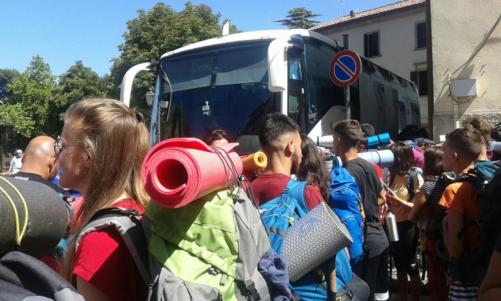 Prima di salire sul pullman, pronto nella piazza, ha avuto luogo la celebrazione della Santa Messa, presieduta da Monsignor Arcivescovo Augusto Paolo Lojudice, che ha voluto essere presente all’inizio del loro cammino di spiritualità, di fede, di solidarietà, di speranza in un mondo diverso, reso sempre più umano, reso migliore.