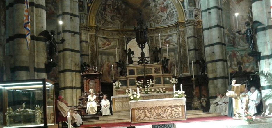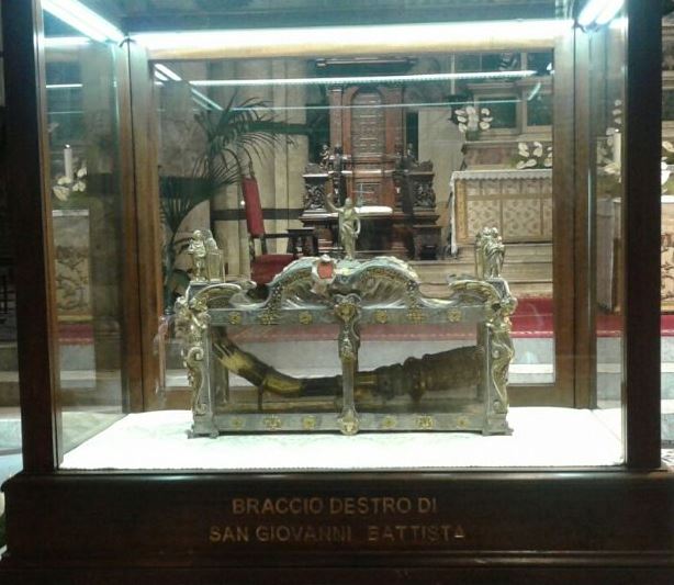 È stata celebrata solennemente, in Cattedrale, la festività della nascita di San Giovanni Battista, con l’esposizione della reliquia del braccio destro del Santo, donata nel 1464 alla città di Siena dal Papa senese Pio II e proveniente dal mondo ortodosso, ottenuta dall’erede al trono imperiale di Costantinopoli, Tommaso Paleològo, fratello dell’ultimo imperatore Costantino XI, ucciso nel 1453 durante l’assedio dei Turchi, che segnò la fine definitiva del millenario Impero.