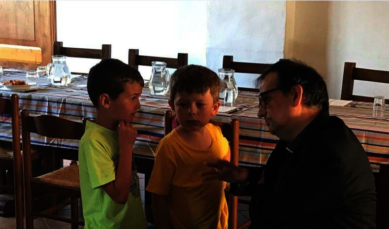 -Una giornata intensa!- ha replicato l’Arcivescovo, che ha continuato a dialogare con loro e a spiegare che si trovavano nella”casa del Vescovo”,dove lui si è stabilito da pochi giorni, successore di un Vescovo giunto all’età della pensione, perché <anche i sacerdoti, i Vescovi, come i laici sono collocati a riposo raggiunta una certa età.> La “casa del Vescovo” è aperta a tutti, ha detto poi invitandoli a tornare, a salutare i loro genitori e concludendo l’incontro con le preghiere del Padre nostro, dell’Ave Maria e con la benedizione.